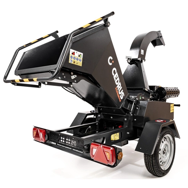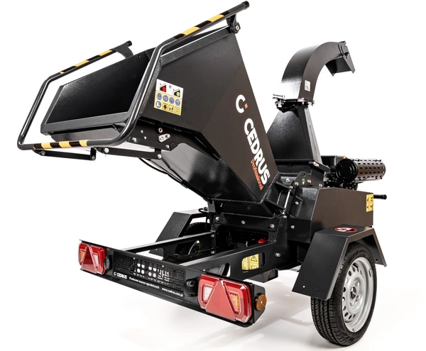 Cedrus RBR13 jest wyposażony w przyczepkę z homologacją drogową, co umożliwia łatwe i bezpieczne przewożenie rozdrabniacza po drogach publicznych.
