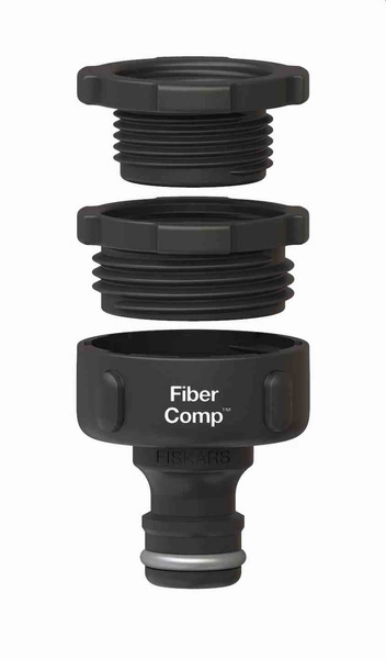 - Dzieki ergonomicznie uksztaltowanemu gwintowi wewnetrznemu, Fiskars FiberComp™ przylacze kranowe mozna latwo podlaczyc do dowolnego ujecia wody. Pasuje do kranów o trzech najbardziej popularnych srednicach: 21 mm (G 1/2"), 26,5 mm (G 3/4") i