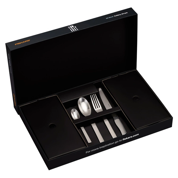• Zestaw sztućców Fiskars z serii All Steel wykonany jest z wysokiej jakości stali nierdzewnej w fabryce Sorsakoski w Finlandii.